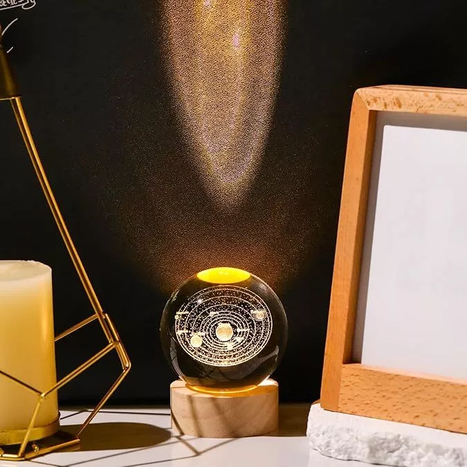 – Esta bola de cristal do sistema solar 3D é um presente ideal para crianças, adolescentes e entusiastas da astronomia. – Feito de cristal de alta qualidade e tecnologia avançada de gravação a laser 3D. Pode ser usado como peça decorativa e luz noturna exclusiva. – Luzes diferentes criam uma atmosfera encantadora de outro mundo e melhoram o efeito visual. – Esta bola decorativa apresenta um impressionante modelo de sistema solar 3D gravado a laser em uma bola de cristal de alta qualidade, que pode ser usada como item decorativo em seu quarto, sala de estar, escritório ou escritório, e vem com base de madeira e cabo de carregamento . – Além de ser uma linda peça de decoração, a Bola de Cristal do Sistema Solar 3D também é uma ótima ferramenta educacional. Pode ser usado para ensinar as crianças sobre o sistema solar e inspirar o amor pela astronomia. Specification: Material: Cristal + madeira maciça Tamaño:Bola de cristal de 8cm Descrição do produto: Esta luz noturna é mais do que uma peça decorativa, é uma obra de arte. Apresentando um modelo 3D realista do sistema solar, gravado em uma esfera de vidro, certamente impressionará até o mais exigente entusiasta da astronomia. A bola é feita de cristal K9 de alta qualidade, que é transparente e mais brilhante do que outros materiais. A avançada tecnologia de gravação a laser garante que os nomes dos planetas sejam claros, únicos e tridimensionais. Esta bola decorativa de cristal do sistema solar 3D é o presente de física perfeito para qualquer pessoa interessada em espaço e astronomia Lista de pacotes: Bola de cristal * 1 Base*1 Cabo USB * 1